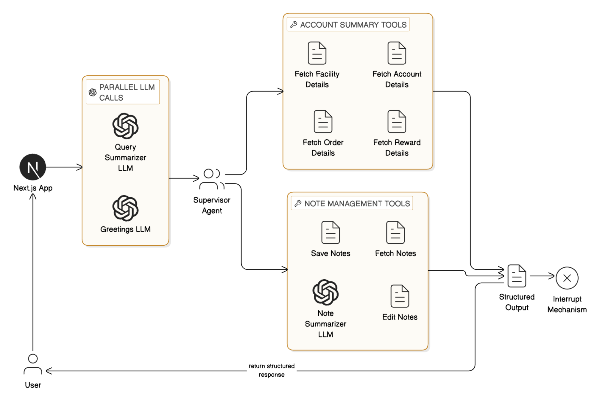 • Cyclic Tool Execution: The Agent may autonomously decide to call multiple tools in sequence or parallel:
